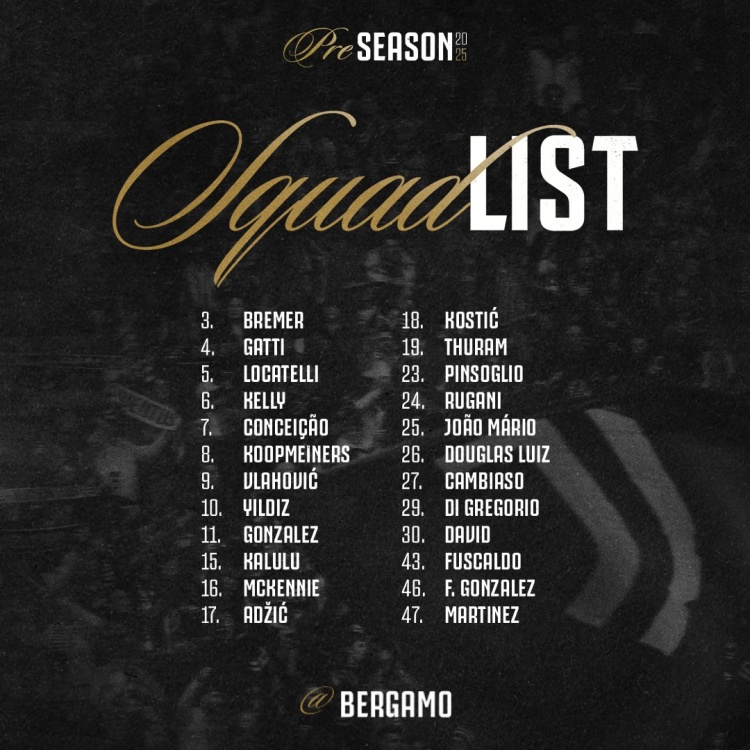 8月16日讯 北京时间明天凌晨,尤文将在友谊赛中对阵亚特兰大,尤文公布了此役的球员名单。